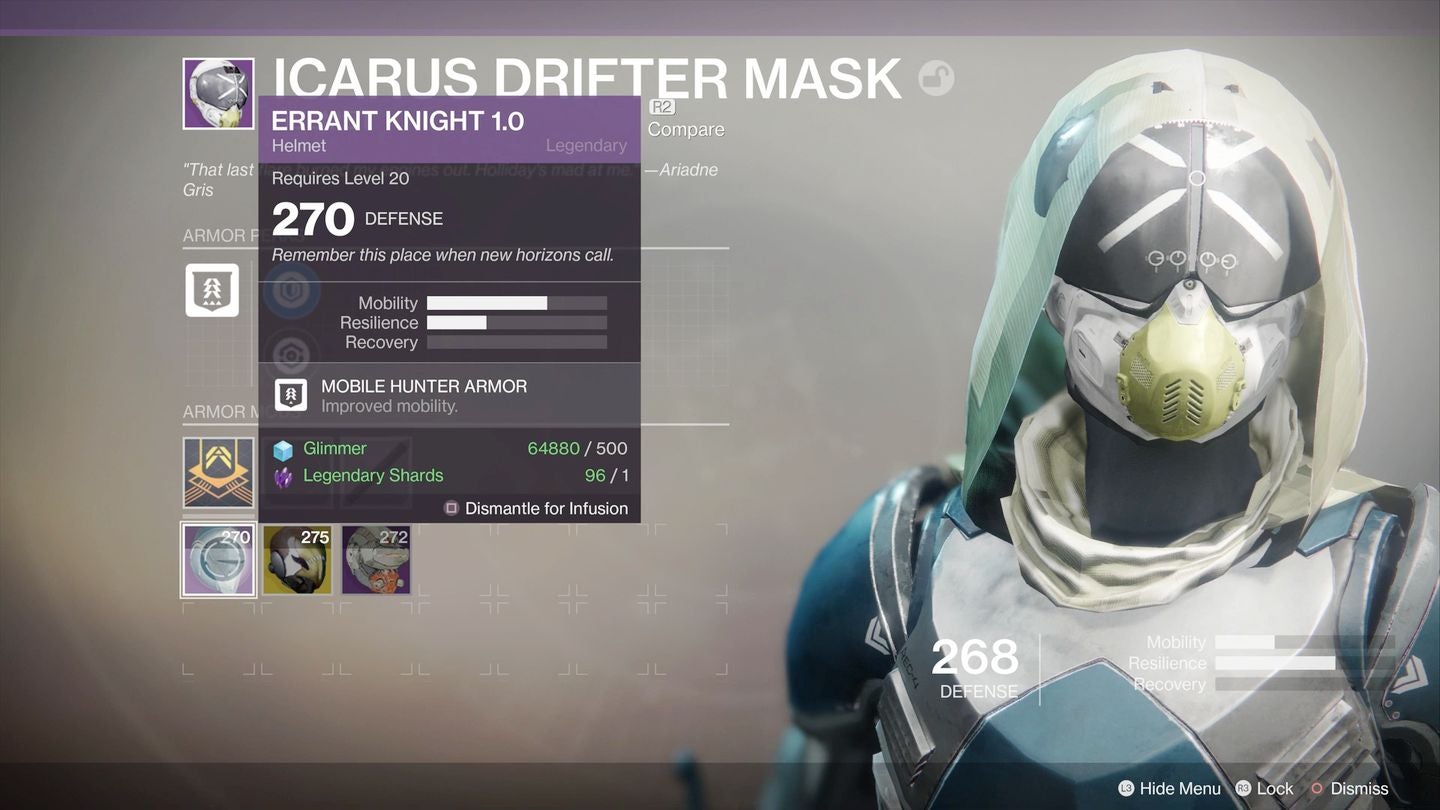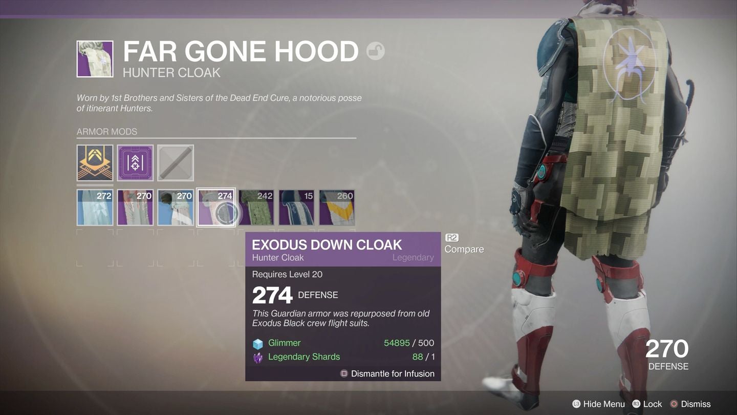 - Infusion only works on Legendary and Exotic gear, not Rare (blue) gear.